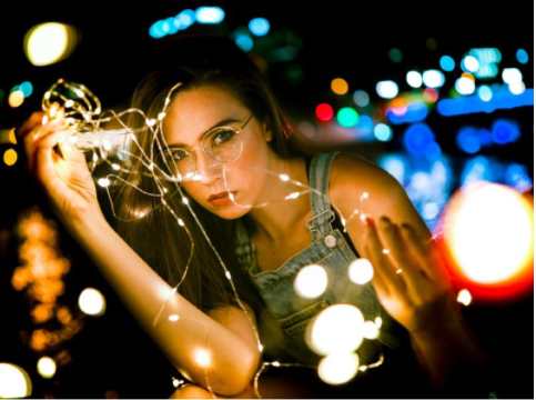 Để tăng thêm phần độc đáo cho bức ảnh khi chụp ở một không gian thiếu sáng. Bạn có thể sử dụng một đoạn dây đèn led đặt gần khuôn mặt của đối tượng chính. Ánh sáng dịu nhẹ của đèn led sẽ không quá chói. Nó vừa đủ để tạo thêm sự lung linh trong bức ảnh của bạn.
