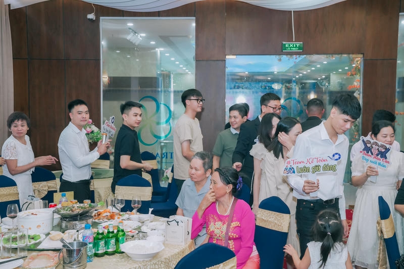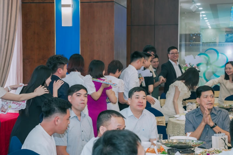 Không khí buổi tiệc thật sự sôi động và ấm cúng, với những nụ cười và tiếng cười rộn rã. Chúng ta đã cùng nhau thưởng thức những món ăn ngon, tham gia các trò chơi thú vị và lắng nghe những chia sẻ đầy cảm xúc từ các thành viên trong công ty.