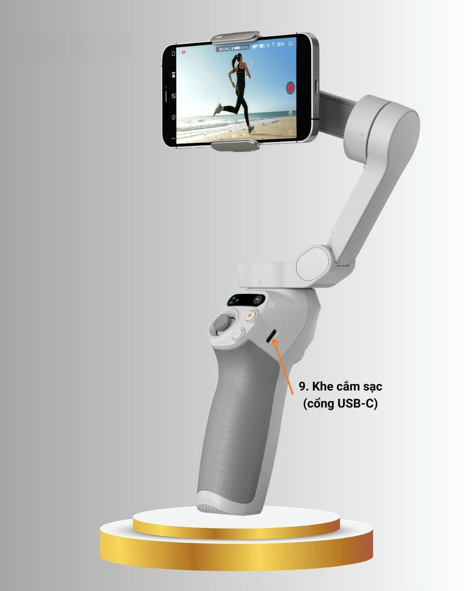 - Cổng sạc (USB-C): Dùng để sạc pin của gimbal.