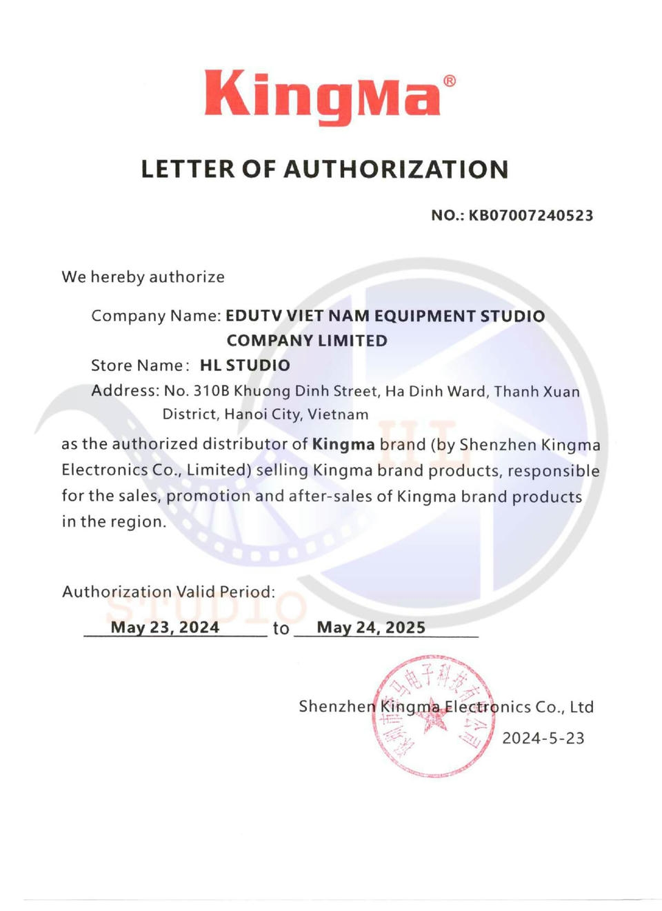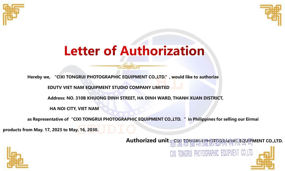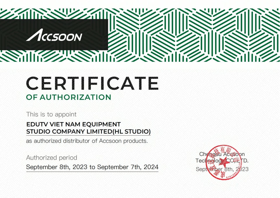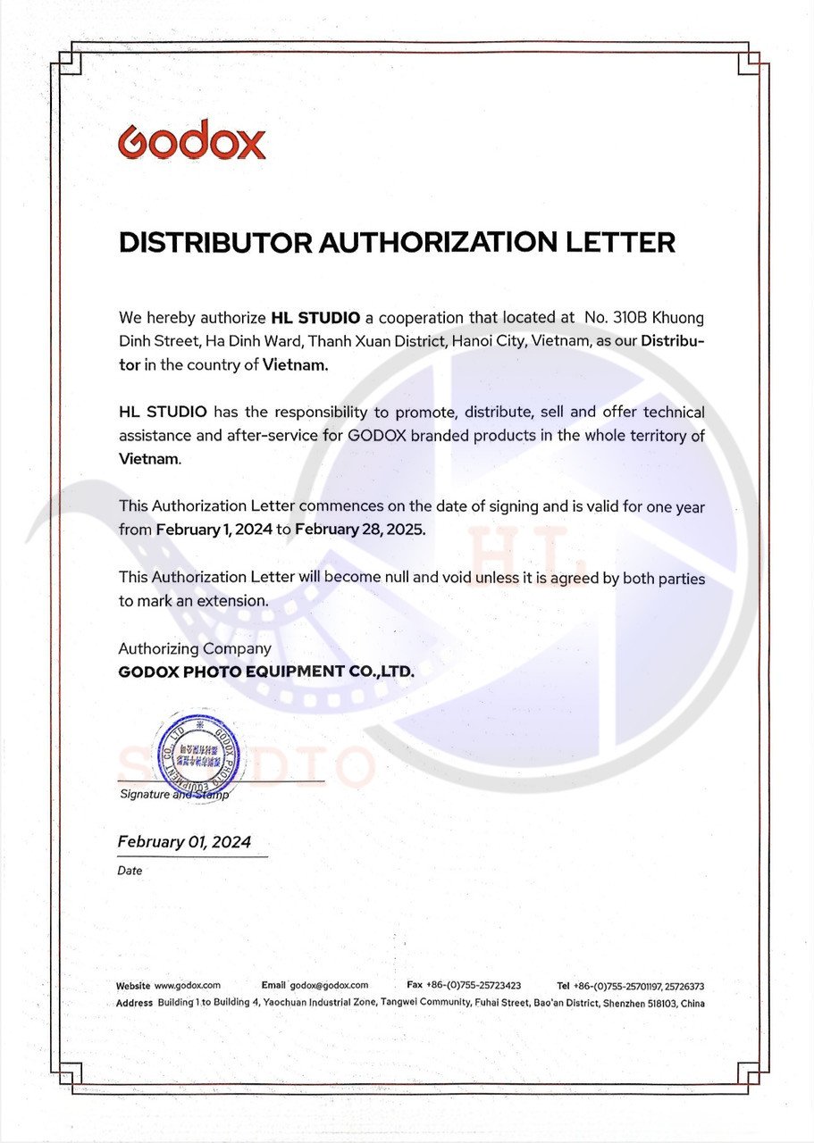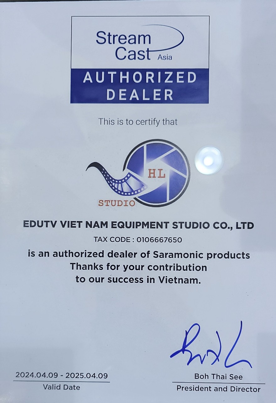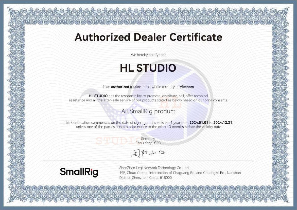 Để khách hàng an tâm, tin tưởng hơn về tính thật – giả của Thiết Bị Quay Phim tại HL Studio, hãy cùng xem những giấy chứng nhận ủy quyền phân phối sản phẩm của Thiết Bị Quay Phim – HL Studio, do các nhà phân phối chính thức của hãng tại Việt Nam cấp.