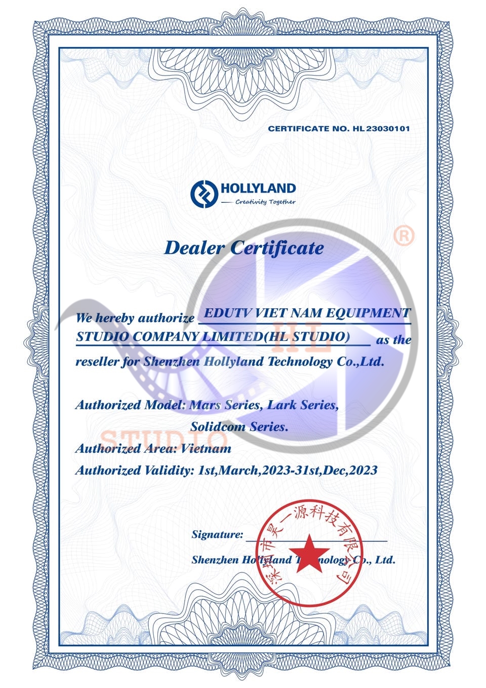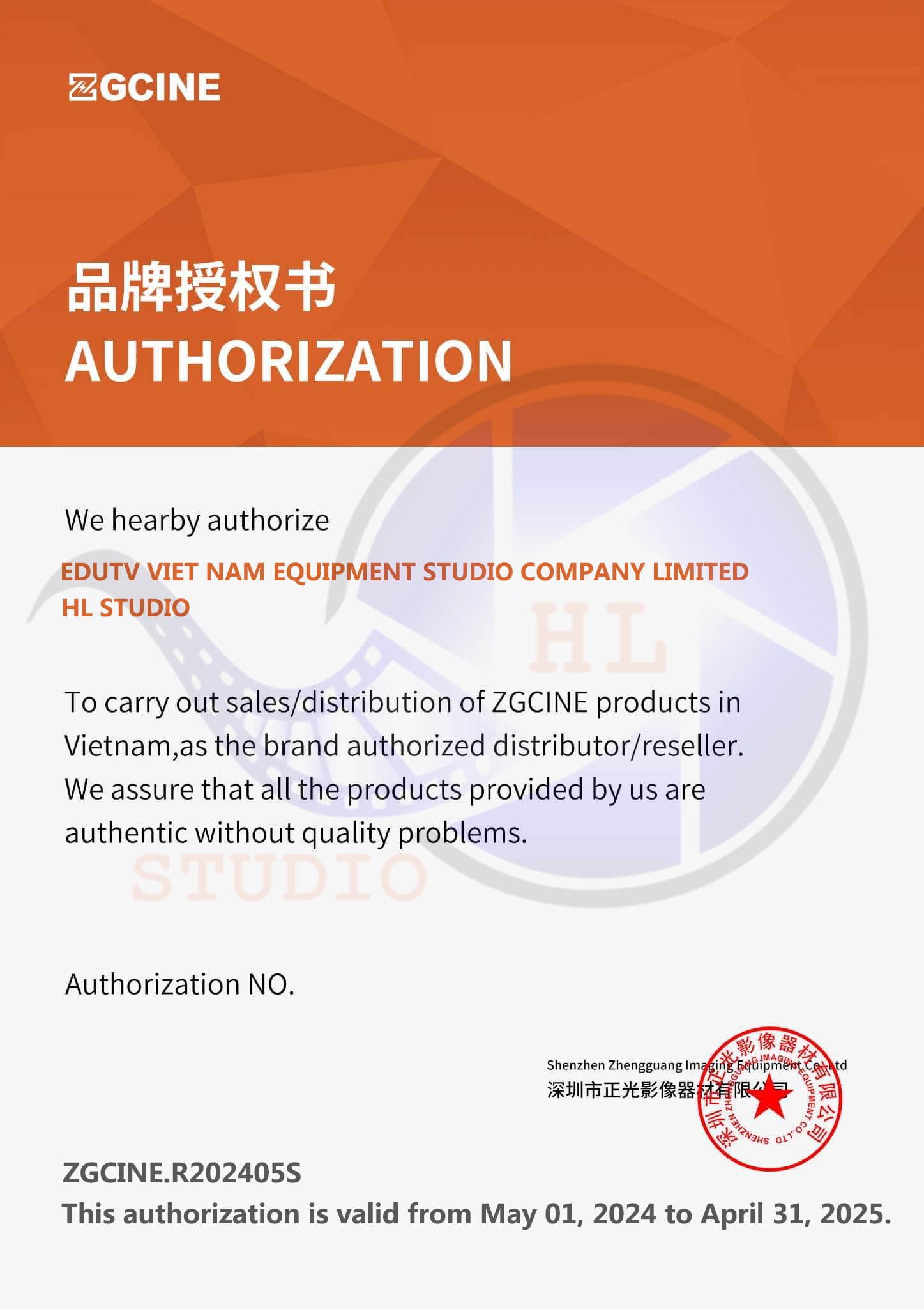 HL STUDIO – TỔNG HỢP GIẤY CHỨNG NHẬN ĐƠN VỊ PHÂN PHỐI THIẾT BỊ QUAY PHIM CHÍNH HÃNG