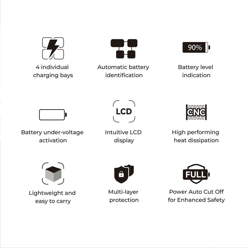 Thiết bị này hỗ trợ nhiều mức điện áp và chế độ sạc khác nhau để đảm bảo sự linh hoạt và an toàn khi sử dụng.