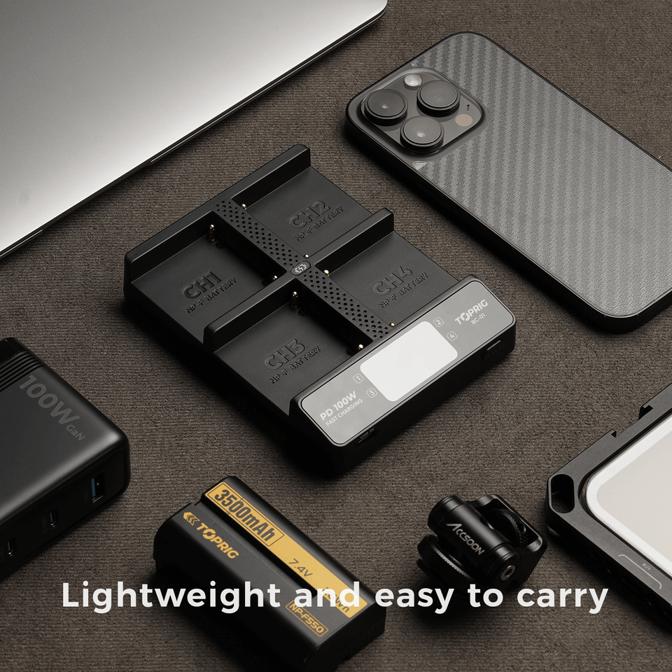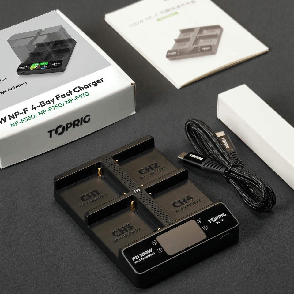 Bộ sạc Accsoon TOPRIG 100W 4-Bay NP-F là một bộ sạc nhanh cho pin dòng NP-F, với màn hình LCD và đầu vào USB-C PD 100W. Bộ sạc này được thiết kế để đảm bảo an toàn, hiệu suất cao và tương thích với các máy quay video và máy ảnh chuyên nghiệp.