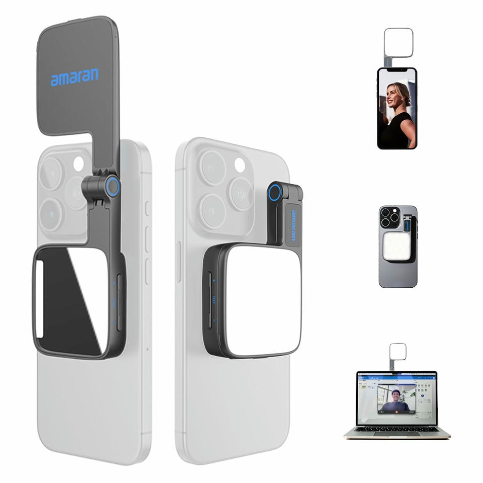 Amaran Go Magnetic Selfie Phone Light là một sản phẩm đèn selfie có khả năng tương thích với MagSafe và nam châm Qi2. Đèn được trang bị hai nguồn sáng LED với gương điều chỉnh và nhiệt độ màu từ 2700K đến 6500K, lý tưởng cho việc chụp ảnh selfie, trang điểm và tạo nội dung.