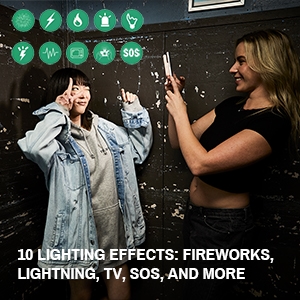 - 10 hiệu ứng: Bao gồm Pháo hoa, Bóng đèn hỏng, Sét, TV, Lửa, SOS, và nhiều hơn nữa.