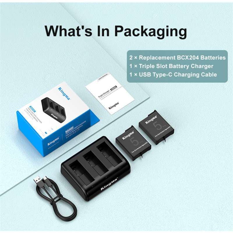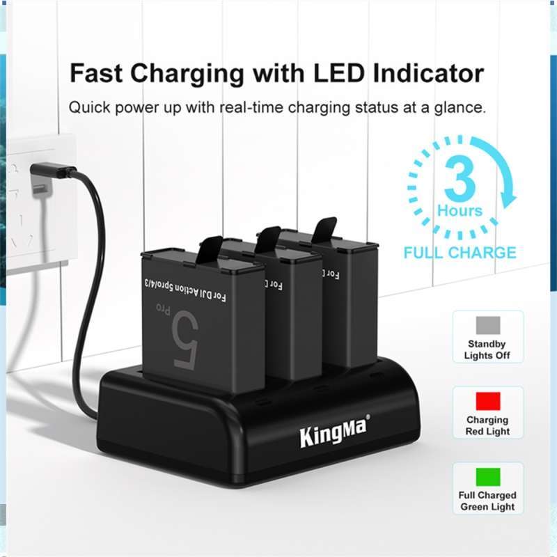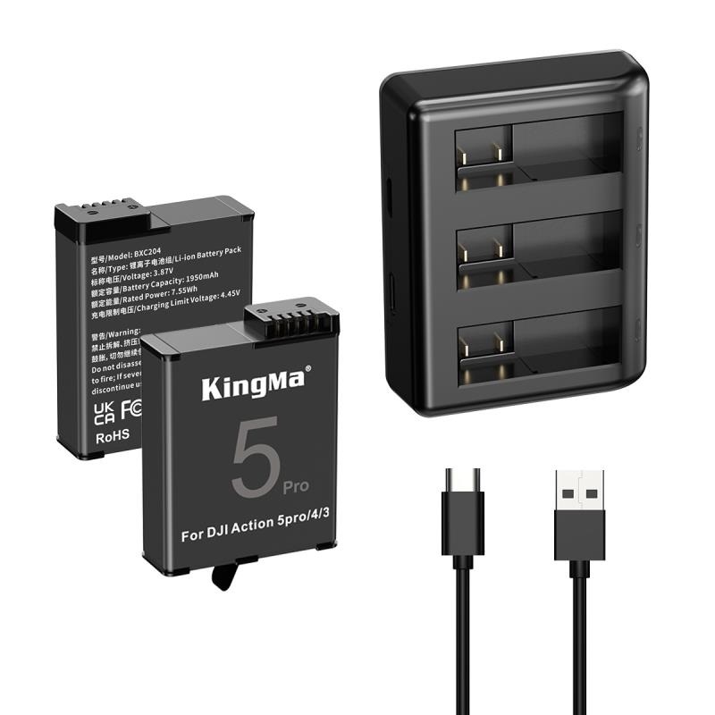 Combo 2 pin và 1 sạc Kingma LCD BM068 dành cho Osmo Action 5 Pro, 4 và 3.