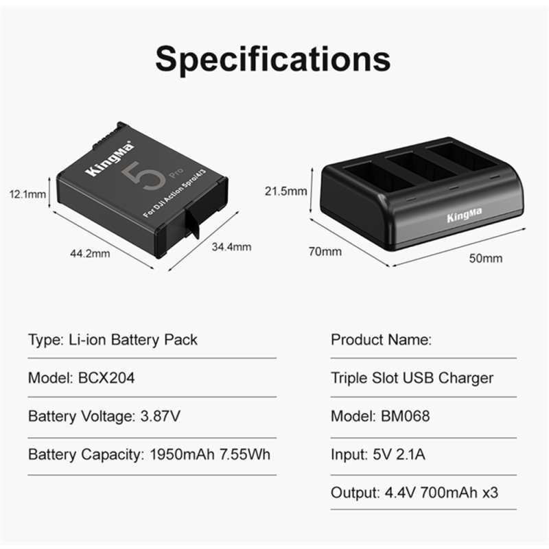 | Điện áp & tiêu chuẩn | Thiết kế đúng điện áp và tiêu chuẩn dành riêng cho DJI Osmo Action 5 Pro, Action 4, Action 3 |