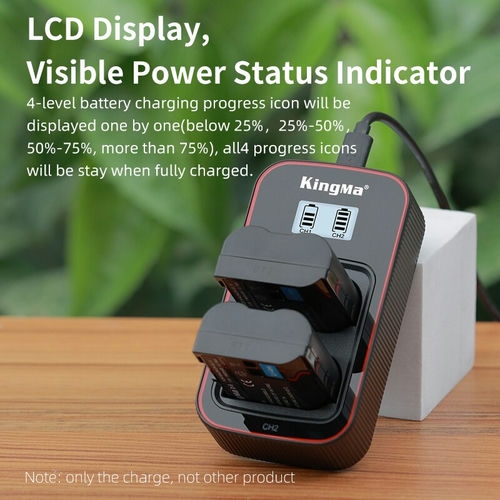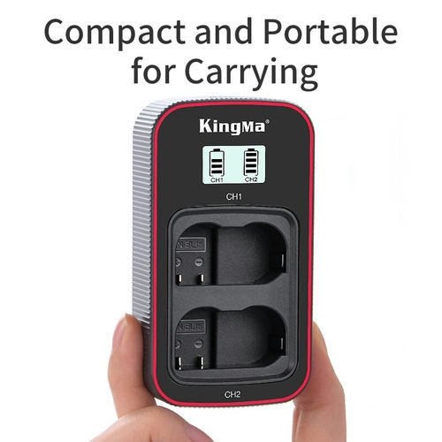 Bộ pin sạc KingMa EN-EL15 cho máy ảnh Nikon tích hợp màn hình LCD rộng hiển thị được lượng pin hiện tại của mỗi pin khi cắm vào, với kích thước Dài x rộng x cao là 105.6mm x 58.6mm x 25mm, chất liệu nhựa ABS cao cấp nhỏ gọn tiện lợi cho nhiếp ảnh gia mang theo bên mình mọi lúc mọi nơi.