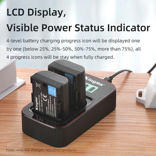 Bộ pin sạc KingMa LP-E6 cho máy ảnh Canon được cải tiến có màn hình LCD hiển thị lượng pin có trong mỗi pin được cắm vào. Chất liệu nhựa ABS cao cấp, kích thước 105.6×58.6x25mm nhỏ gọn tiện lợi cho các nhiếp ảnh gia mang theo mọi lúc mọi nơi.