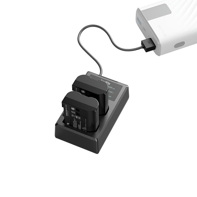 - Sạc nhanh kép cho phép sạc nhanh một hoặc hai pin với đầu ra dòng cao.