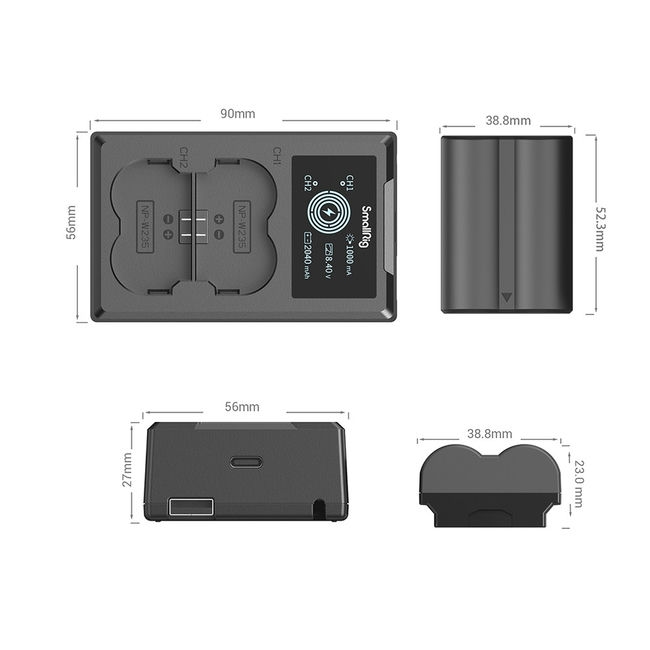 - Bộ pin và sạc NP-W235 của SmallRig bao gồm hai pin và một bộ sạc.