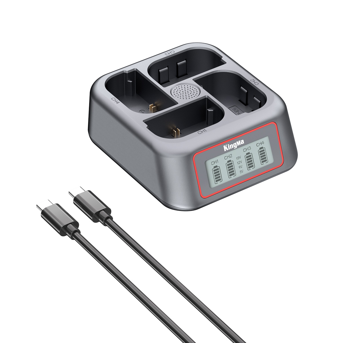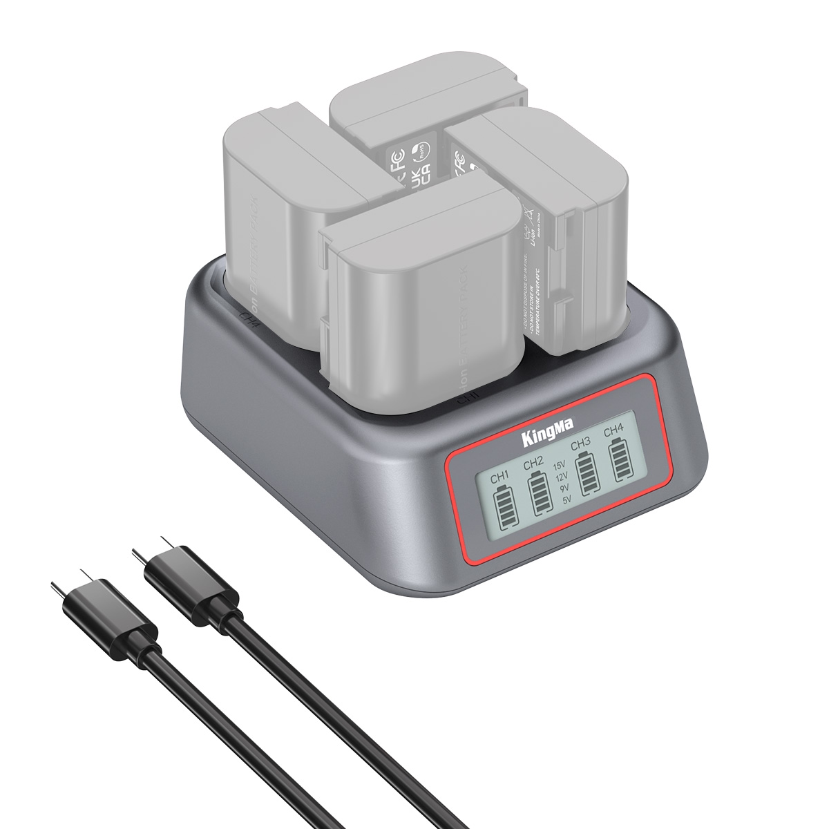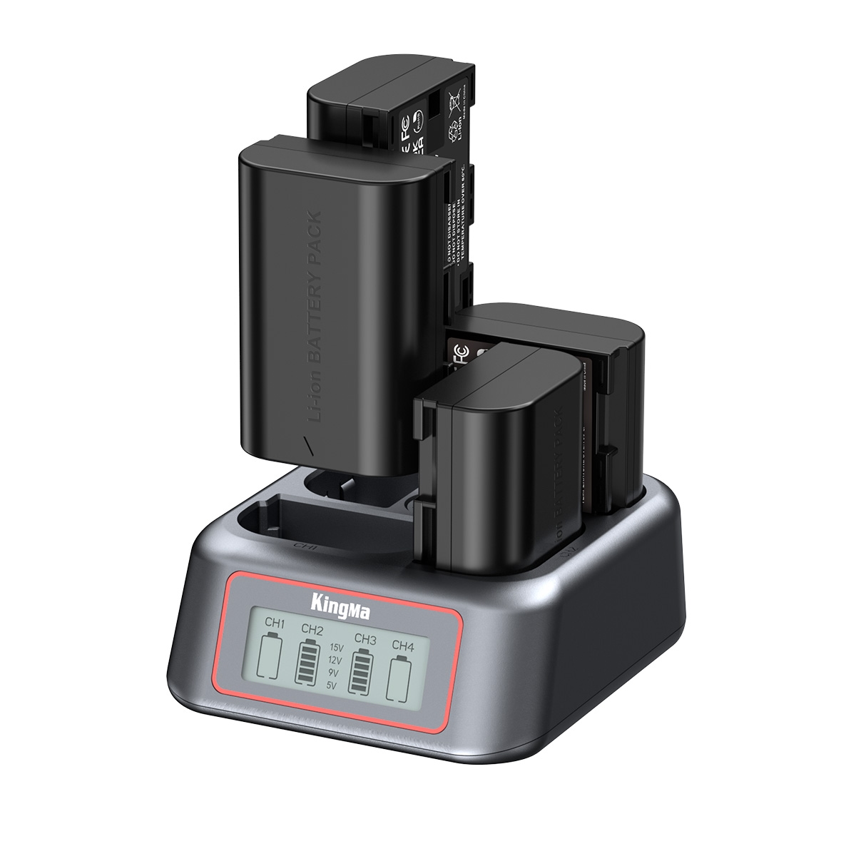 Bộ sạc 4 pin Kingma LP-E6/ E6P/ E6NH (New) là thiết bị sạc đồng thời 4 pin Canon LP-E6, LP-E6P, LP-E6N, LP-E6NH với hiệu suất cao. Sản phẩm cho phép sạc nhanh gấp 4 lần so với bộ sạc tiêu chuẩn, đầy đủ 4 pin chỉ trong 2.5 giờ. Màn hình LCD hiển thị thời gian thực giúp theo dõi mức pin, điện áp và trạng thái sạc từng khe pin.