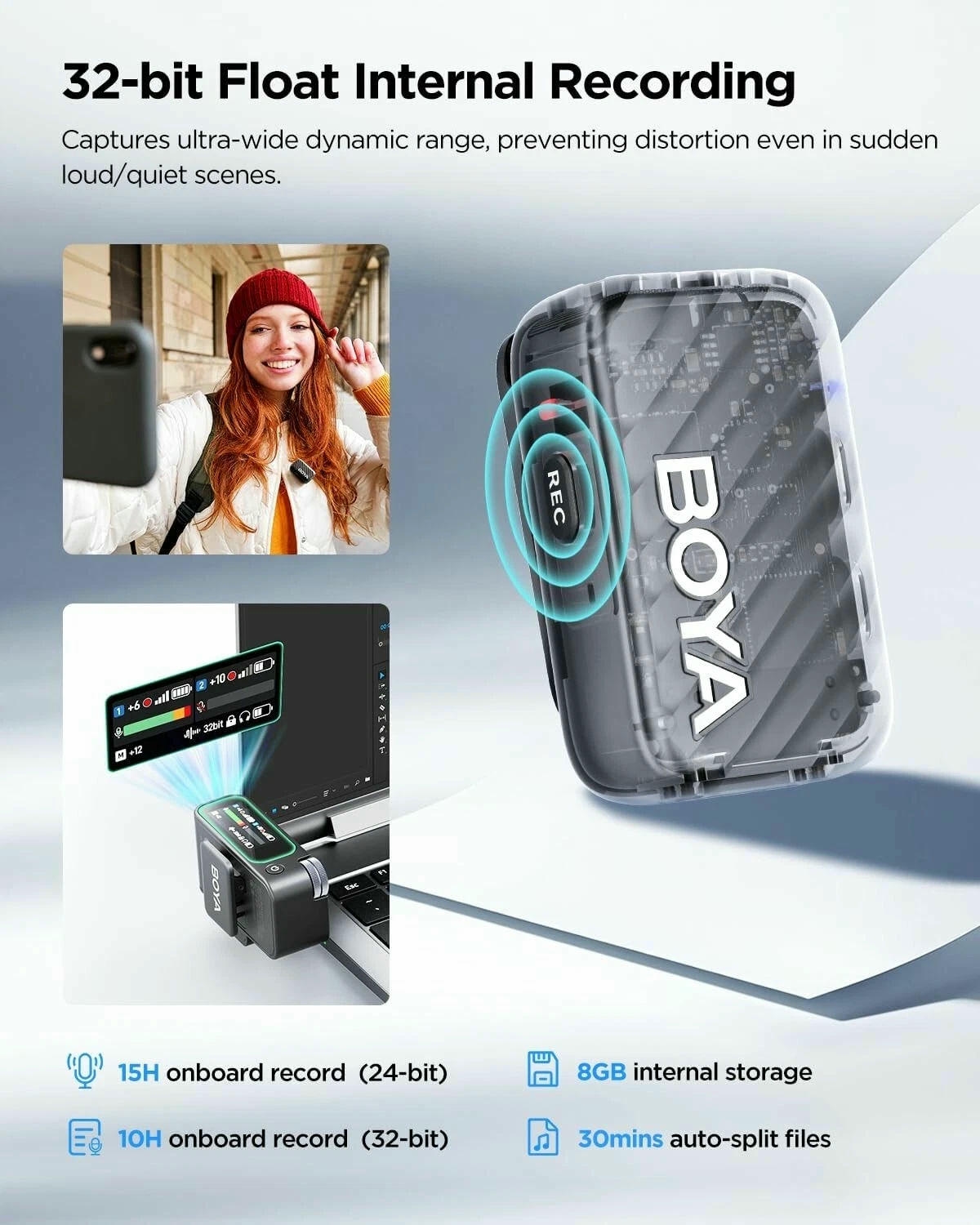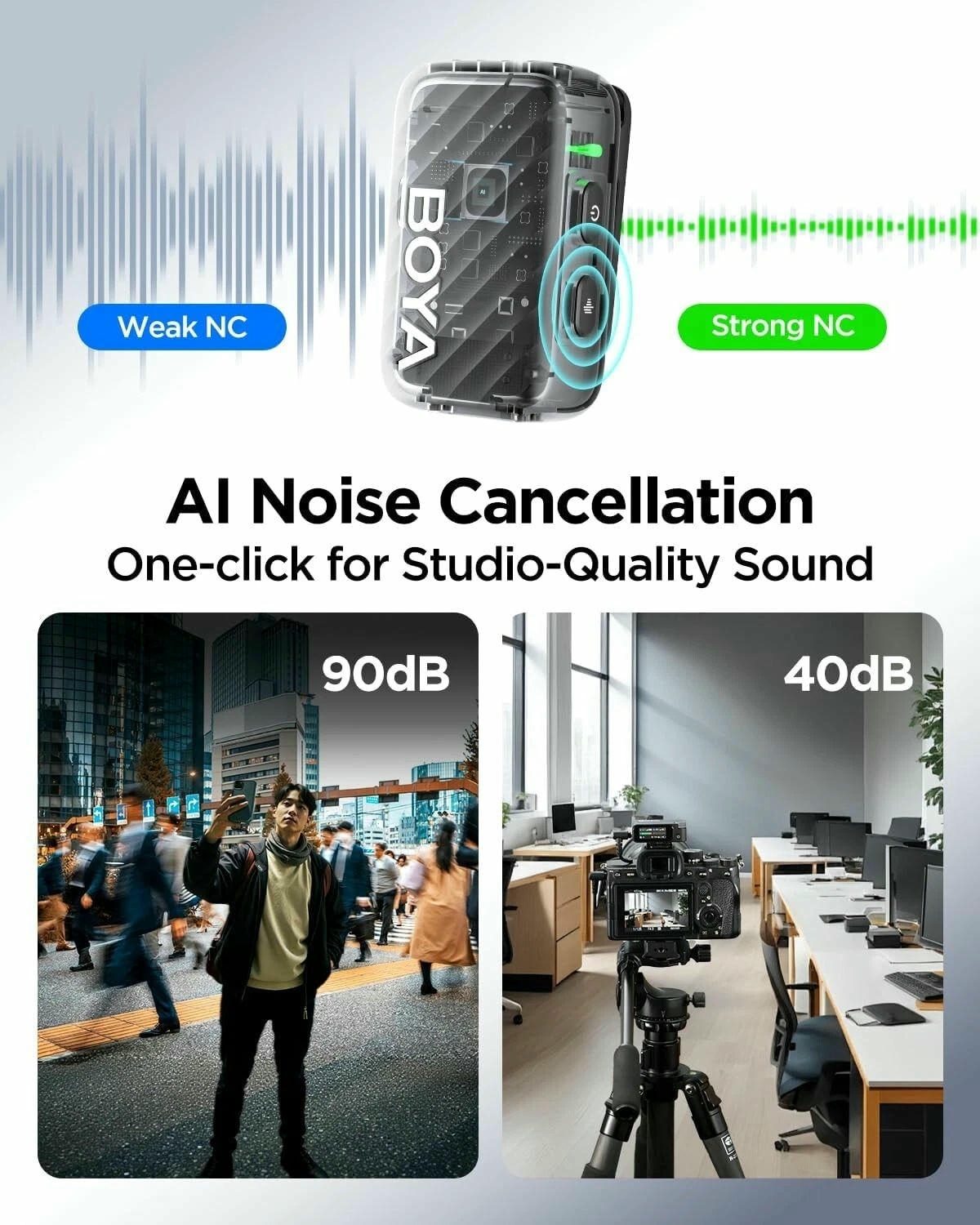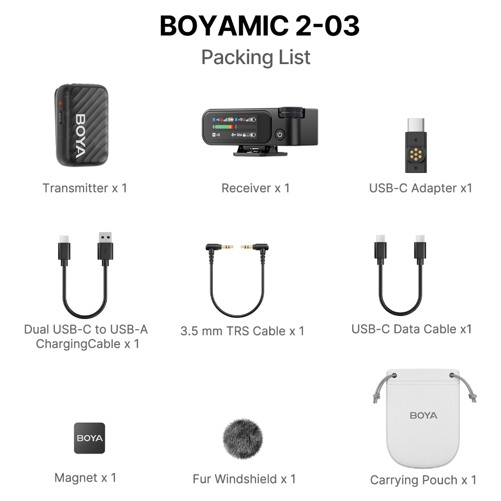Microfono không dây Lavalier BOYAMIC 2 là thiết bị cao cấp dành cho iPhone, Android và PC, cung cấp âm thanh chất lượng chuyên nghiệp với công nghệ chống ồn AI tiên tiến, thời lượng pin lâu và khả năng ghi âm đa thiết bị.