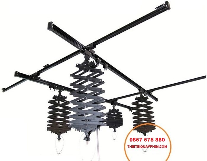 Dàn treo 4 đèn studio mang lại hiệu quả tối đa cho người sử dụng. Hệ thống bao gồm các thanh ray liên kết với nhau thông qua các bánh xe dầy dặn, chắc chắn. Tay xương cá treo đèn tải trọng cao, có thể tải những dòng đèn quay phim nặng tới 12kg.