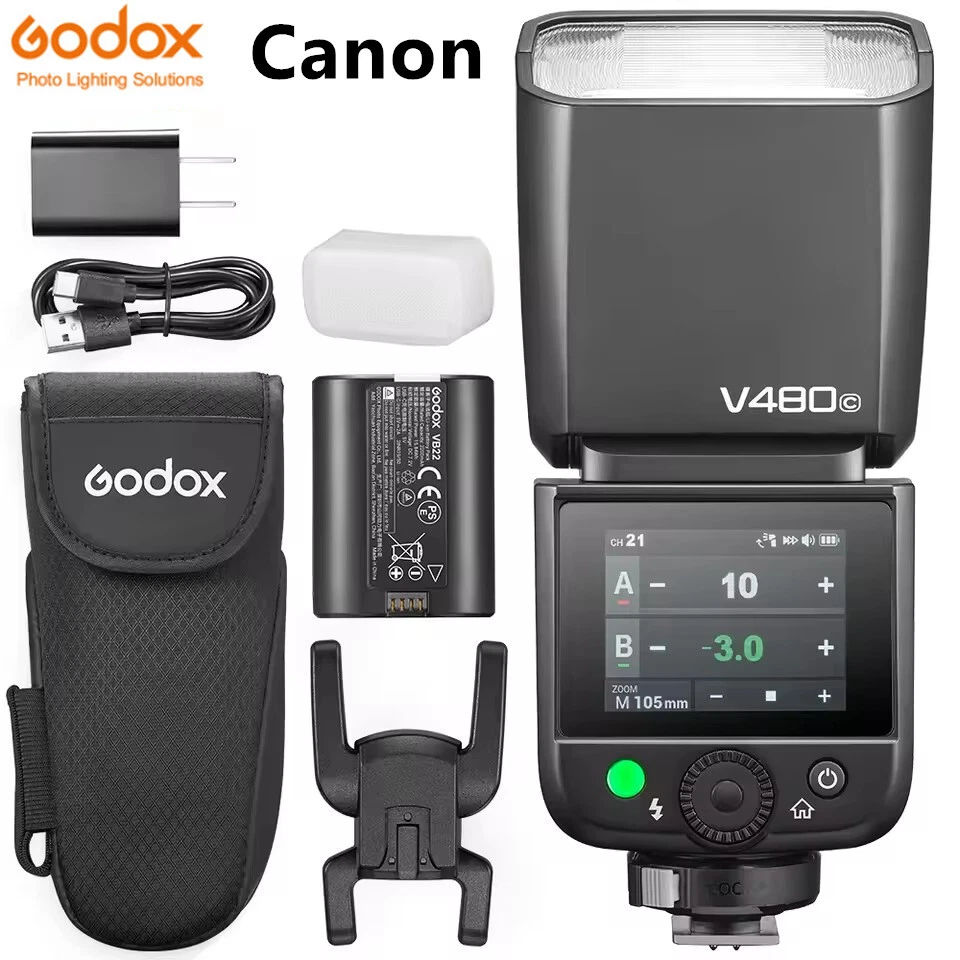 Godox V480 là đèn flash gọn nhẹ với công suất GN 50, mang đến ánh sáng chất lượng studio mọi nơi. Được trang bị pin Li-ion dung lượng lớn cho 650 lần flash đầy công suất cùng thời gian hồi 1,7 giây, V480 có màn hình cảm ứng màu 2.0″ và nút bấm vật lý giúp điều khiển nhanh chóng, chính xác.