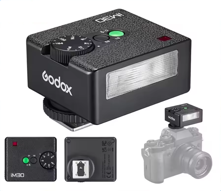 Godox iM30 là một đèn flash mini mới với chế độ quang học S1/S2, nhiệt độ màu 6500K. Sản phẩm này được thiết kế để sử dụng với nhiều mẫu máy ảnh khác nhau, mang lại sự tiện lợi và tính di động cao.