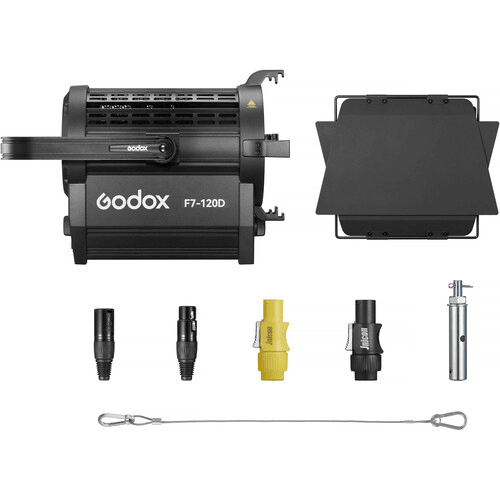 - Đèn LED Fresnel F7-120D từ Godox là nguồn ánh sáng chất lượng cao với góc chiếu linh hoạt và có thể điều chỉnh.