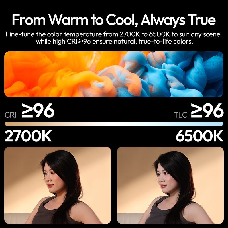 - Nhiệt độ màu (CCT): 2700 – 6500K