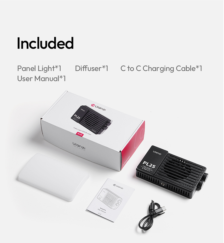 Đèn LED ULANZI PL25 công suất 25W, có dải nhiệt màu rộng từ 2700K đến 6500K, chỉ số CRI cao trên 96+, phù hợp cho chụp ảnh và quay video chuyên nghiệp. Đèn hỗ trợ sạc nhanh qua cổng Type-C, là lựa chọn lý tưởng cho việc quay vlog, chụp ảnh bằng điện thoại và máy ảnh.