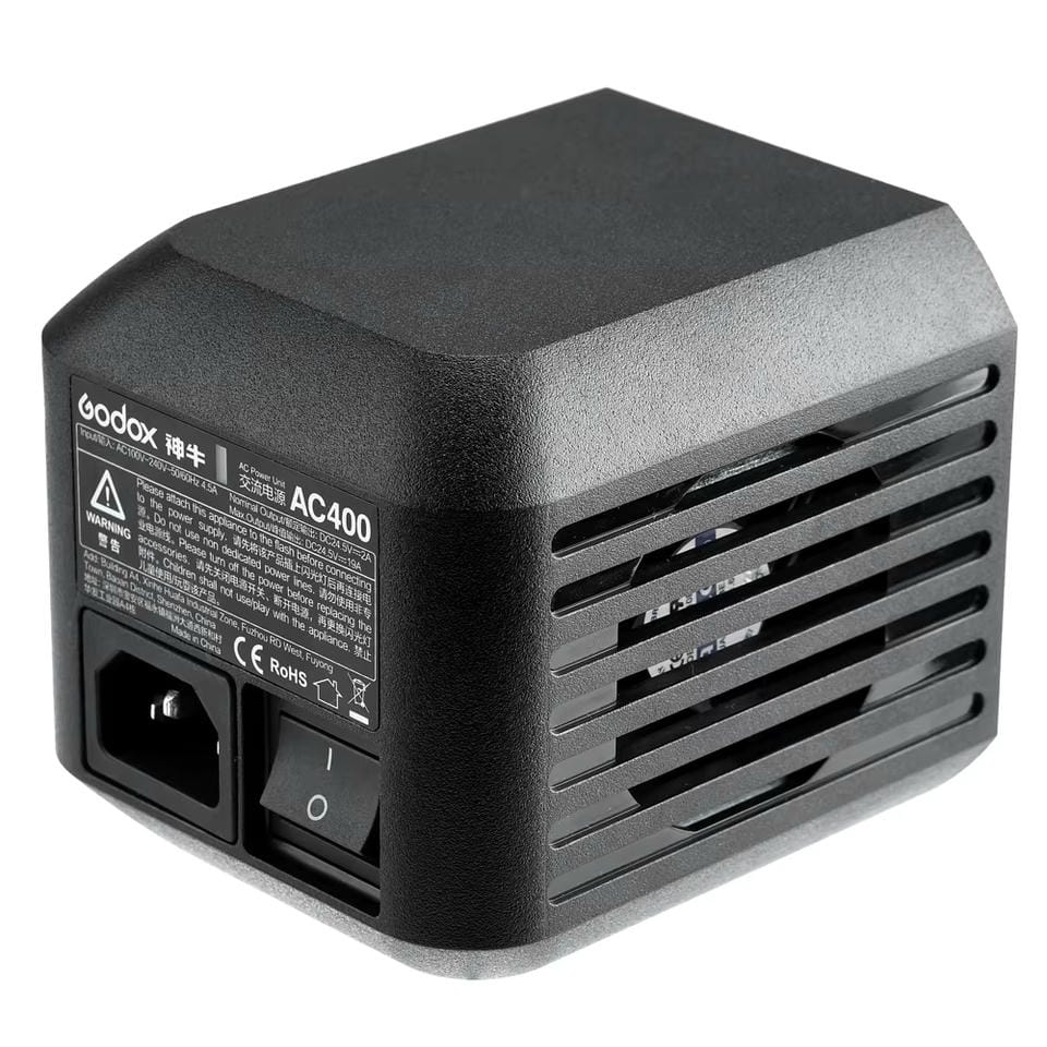Sản phẩm là adapter nguồn AC Godox AC400 kèm cáp, dùng để cấp điện trực tiếp cho đèn flash Godox AD400Pro thay vì dùng pin. Mua Godox AC400 tại thietbiquayphim với giá tốt nhất tại đây.