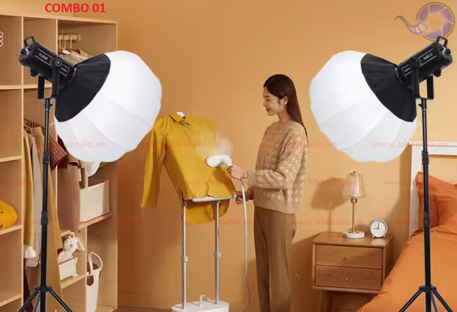 Gói thiết bị gồm 2 đèn SL100D và 2 Softbox cầu 65cm CS-65D, đèn dùng để quay người mẫu giới thiệu quần áo, bán hàng livestream, hoặc dùng chụp chân dung. Đèn có CRI đạt trên 95, cho màu sắc chân thật và cảnh chụp được hoàn hảo hơn bao giờ hết
