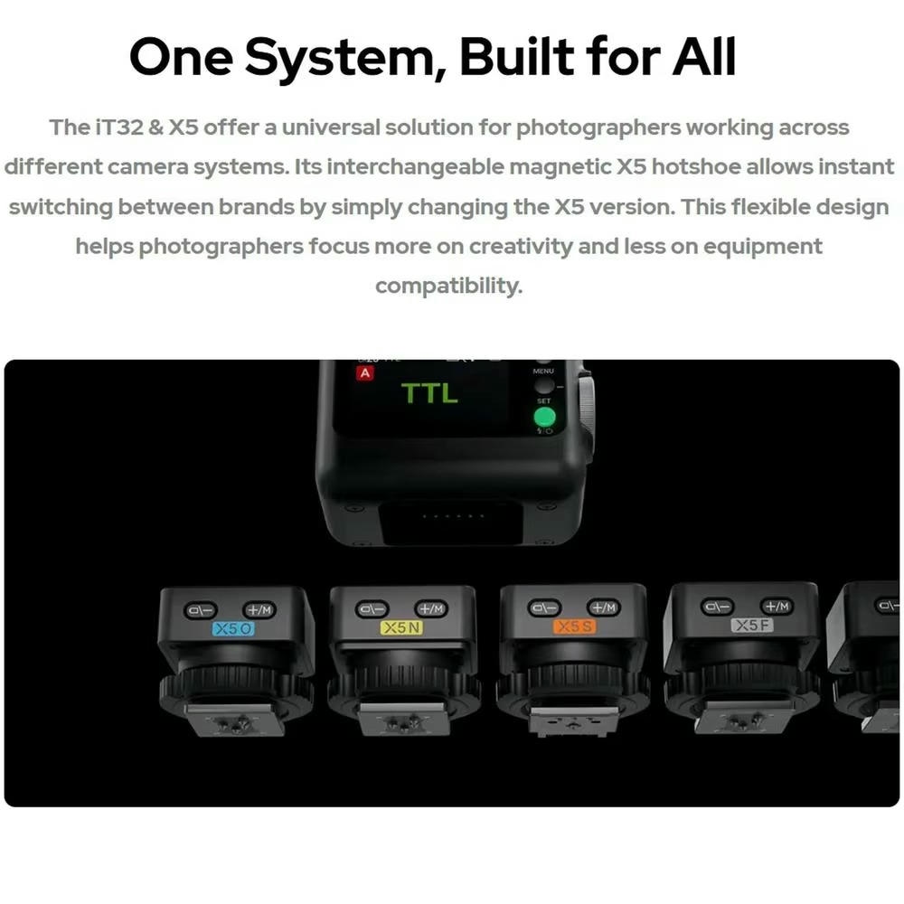 | Tương thích | Canon, Nikon, Sony, Fujifilm, OM System (qua các phiên bản X5 khác nhau) |