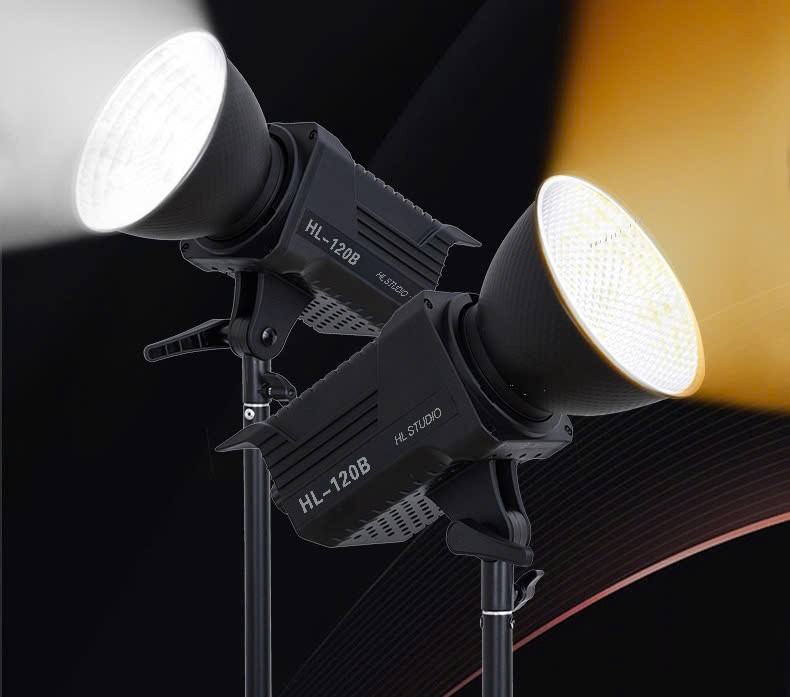 HL-120B – Đèn led studio 120w Bi-Color chuyên nghiệp chiếu sáng liên tục với nhiệt độ màu ánh sáng điều chỉnh từ 3200K – 5600K, CRI 97+, TLCI 97+, 7500 Lux@1M, LED HL-120B sử dụng ngàm Bowens thông dụng và điều khiển từ xa không dây 2.4G tiện dụng để chụp chân dung, đám cưới, quay phim ngoài trời, video YouTube…