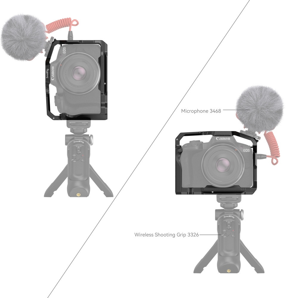 SmallRig Cage 4214 là bộ khung bảo vệ toàn diện cho máy ảnh Canon EOS R50, đồng thời cung cấp nhiều điểm gắn phụ kiện tiện lợi.