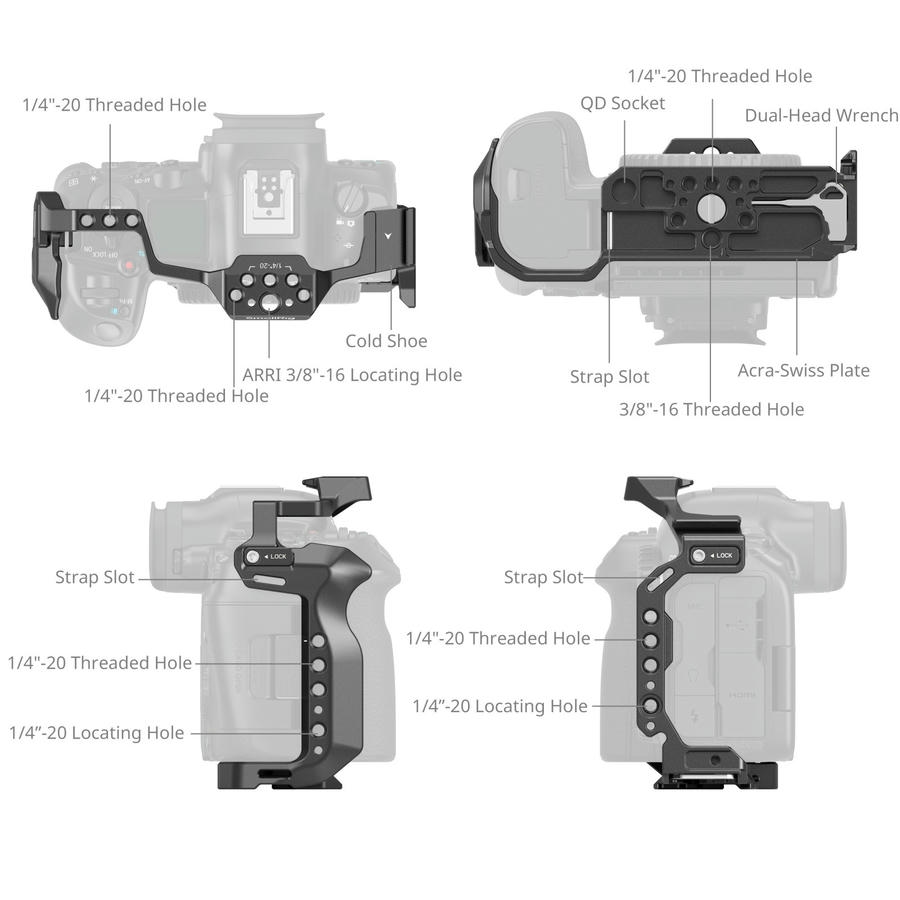 SmallRig Cage cho Canon EOS R5 Mark II 4978 là một giải pháp bảo vệ hoàn hảo cho máy ảnh, với thiết kế một khối không làm cản trở các giao diện. Sản phẩm có hệ thống khóa ba điểm, nhiều giao diện mở rộng và đi kèm với đế nhanh Arca-Swiss.