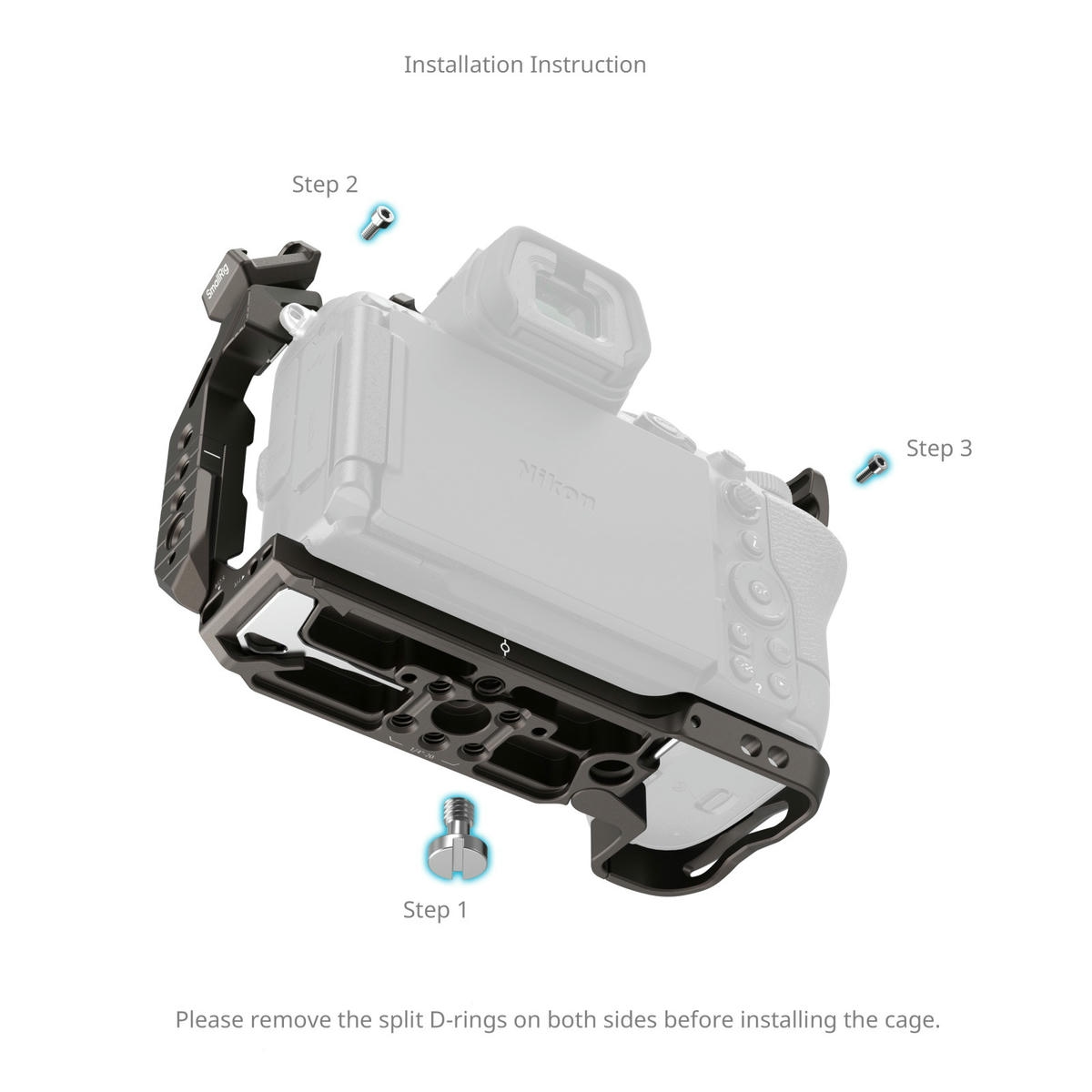 - Tháo bỏ D-ring hai bên máy ảnh trước khi lắp cage.