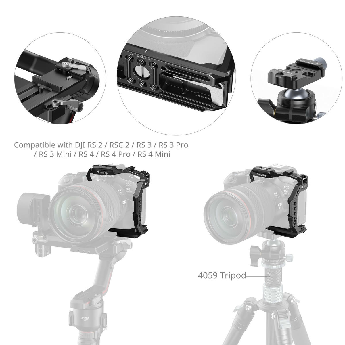 SmallRig 5953 “HawkLock” Quick Release Half Cage là một bộ cage bảo vệ và hỗ trợ lắp phụ kiện cho máy ảnh Canon EOS R6 Mark III / R6 Mark II / R5 Mark II, với thiết kế chắc chắn và nhiều tính năng tiện lợi.