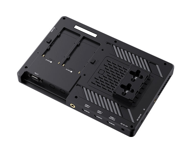 - Tấm pin kép có thể lắp hai pin NP-F cùng lúc, giúp kéo dài thời gian hoạt động.