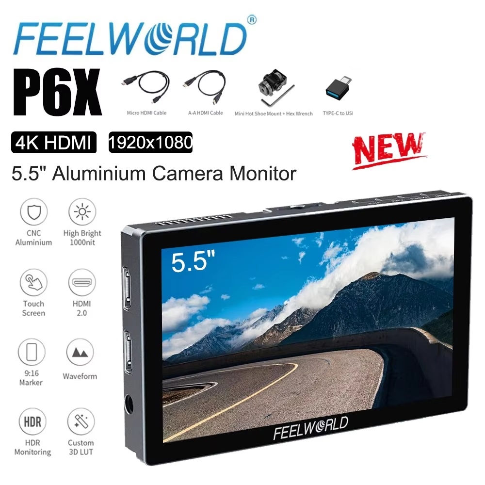 FEELWORLD P6X là màn hình cảm ứng 5.5 inch Full HD, hỗ trợ độ phân giải 4K@60Hz với tốc độ truyền tải HDMI cao, thiết kế chắc chắn bằng hợp kim nhôm, trọng lượng nhẹ 249g, phù hợp cho nhiều môi trường quay phim. Thiết bị tích hợp nhiều chức năng hỗ trợ quay phim chuyên nghiệp, giúp tối ưu hiệu quả làm việc tại hiện trường.
