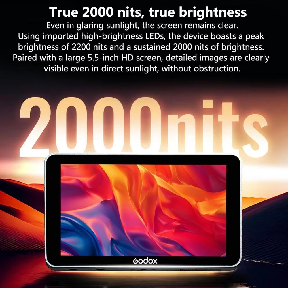 Godox GM6S Pro là một màn hình trường quay chuyên dụng dành cho máy ảnh DSLR, có kích thước 5.5 inch với độ phân giải Full HD 1920×1080, màn hình IPS cảm ứng, hỗ trợ đầu vào 3D LUT và cổng HDMI 4K, mang lại hình ảnh siêu sáng, rõ nét và chính xác màu sắc.