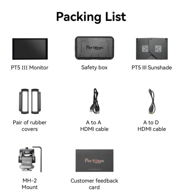 Portkeys PT5III là màn hình cảm ứng 5.4 inch với độ sáng cao 800 nits, tương thích HDMI và hỗ trợ độ phân giải 4K30P, phù hợp cho việc sử dụng cùng các loại máy ảnh.