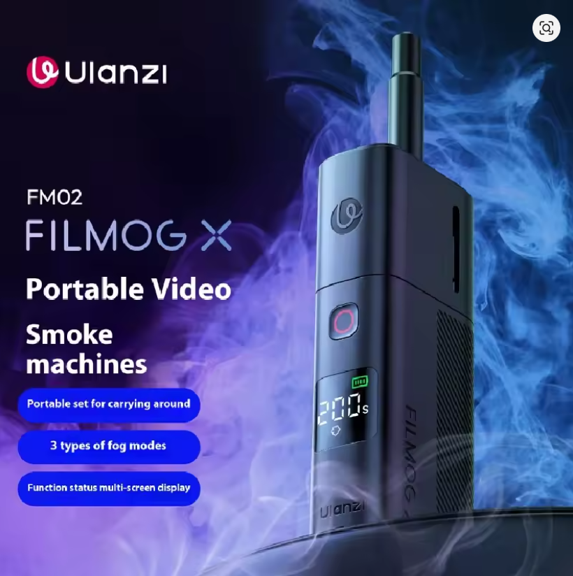 Máy tạo khói cầm tay ULANZI FM02 (màu đen, chất liệu ABS) nhẹ, di động và an toàn, dùng dung dịch glycerin thực vật tạo khói sạch, không mùi và không bụi. Thiết bị có sạc Type-C nhanh, điều khiển nhiệt độ chống quá nhiệt, tương thích mount 1/4″, hoạt động bằng 2 pin AA (đã kèm) và đi kèm túi đựng cùng nhiều phụ kiện để tạo 36 hiệu ứng khói điều chỉnh được.