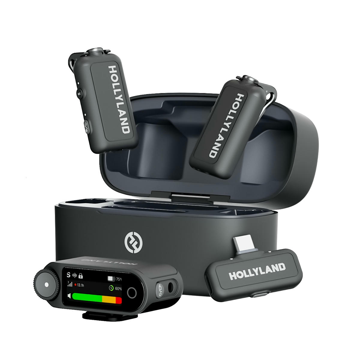Bộ micro không dây Hollyland LARK MAX 2 Combo (bao gồm Receiver cho máy quay – Camera RX và Receiver USB-C) màu Space Gray là hệ thống micro cài áo không dây dành cho ghi âm hoặc livestream, tương thích với máy quay và thiết bị có cổng USB-C, thiết kế nhỏ gọn, màu sắc sang trọng.