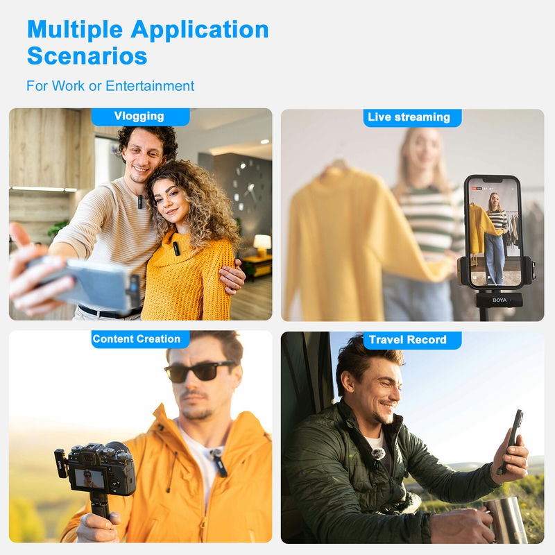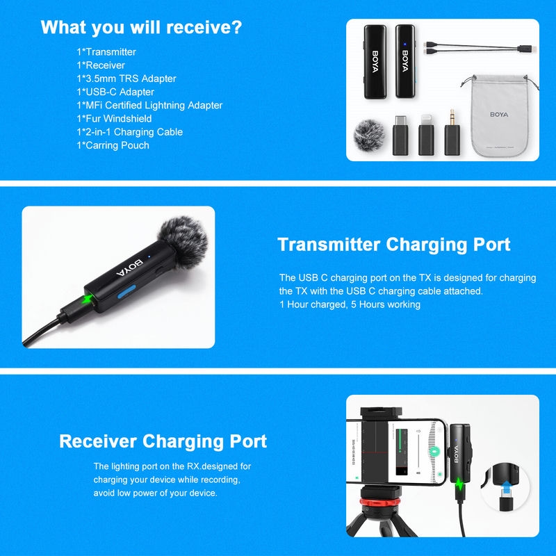 Boyalink A1/A2 là một hệ thống Micro không dây có kênh 2.4G kép. Được trang bị các đầu nối USB-C, Lightning và 3.5mm TRS, Boyalink là giải pháp tối ưu cho người sáng tạo cần sử dụng microphone không dây.