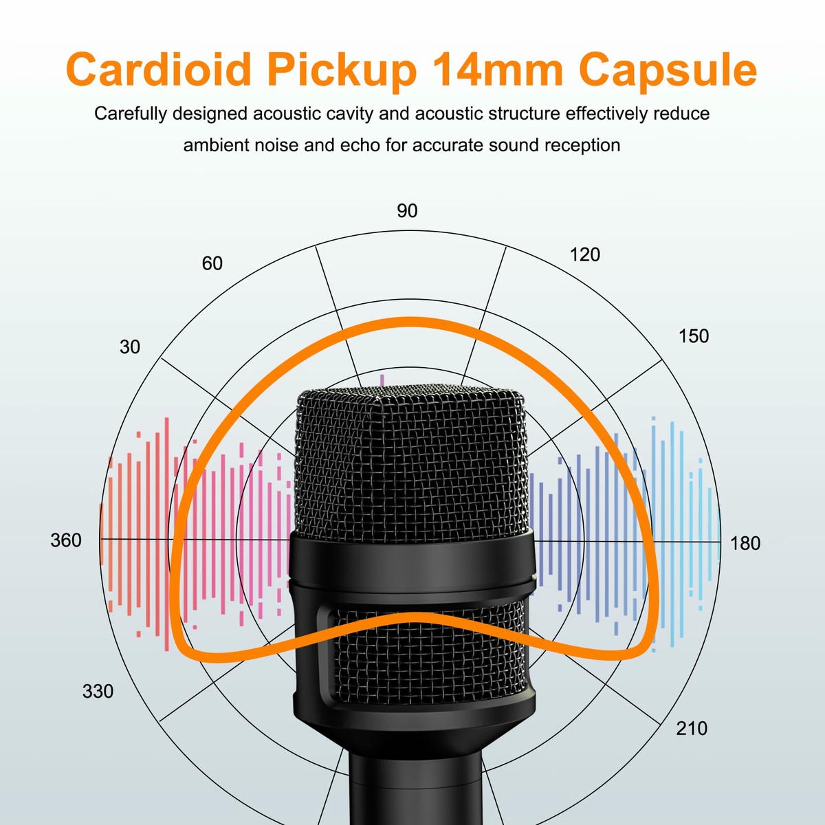 | Loại micro | Condenser, capsule 14mm, định hướng Cardioid |