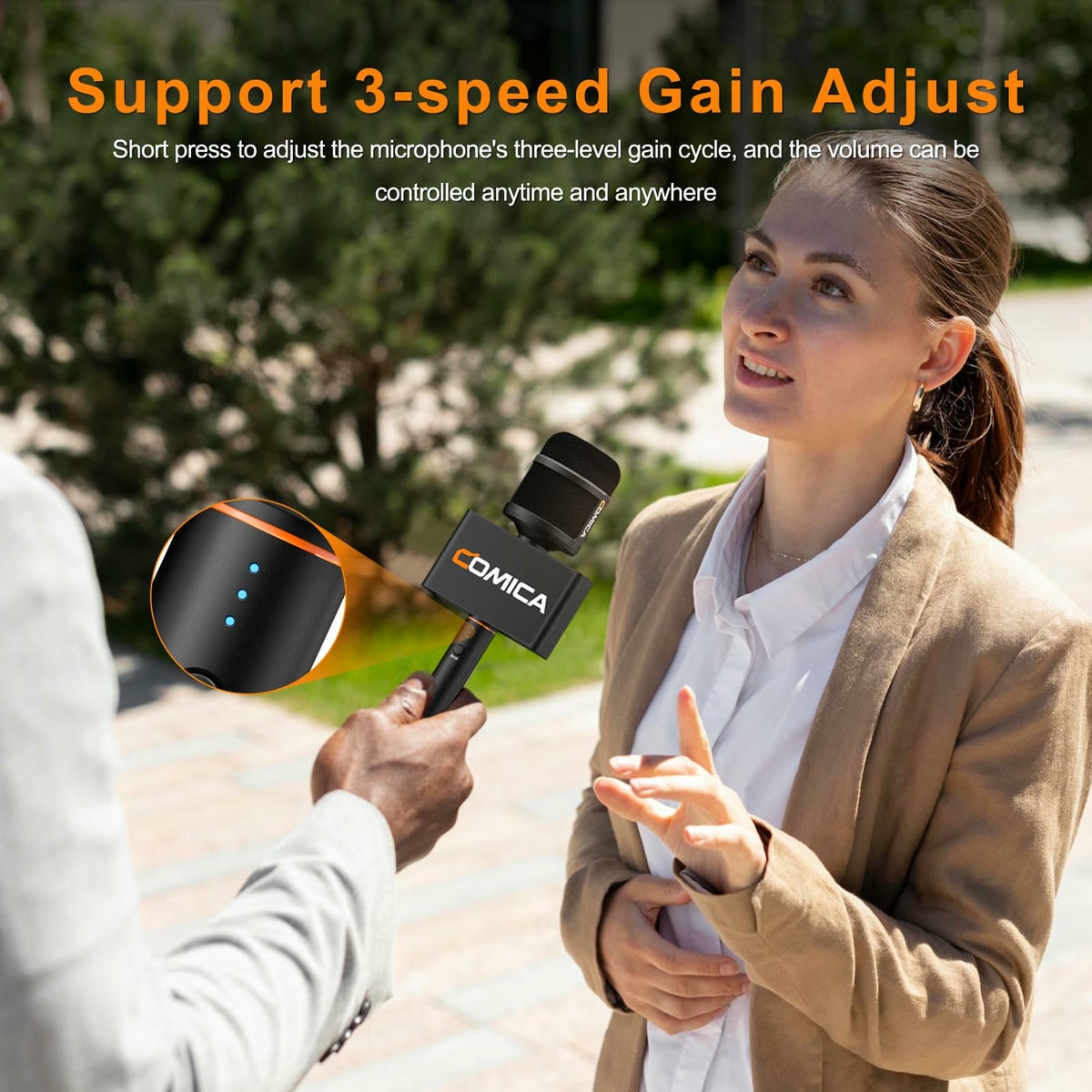 COMICA Revo S là micro cầm tay không dây với đầu thu USB-C, hỗ trợ quay âm thanh chất lượng cao 48kHz/24bit. Micro có thời lượng pin lên đến 15 giờ, phù hợp cho phỏng vấn ngoài trời, podcast và tương thích tốt với iPhone 15/16 và các điện thoại Android dùng cổng USB-C.