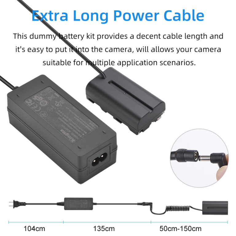 Bộ pin giả KingMa DC5521 cho NP-F550 kèm theo bộ chuyển đổi nguồn AC được thiết kế đặc biệt dành cho các camera thuộc dòng Sony. Bộ sản phẩm này mang lại sự tiện lợi và hiệu suất cao cho người dùng, giúp bạn không phải lo lắng về việc hết pin giữa chừng trong quá trình quay phim hoặc chụp ảnh.