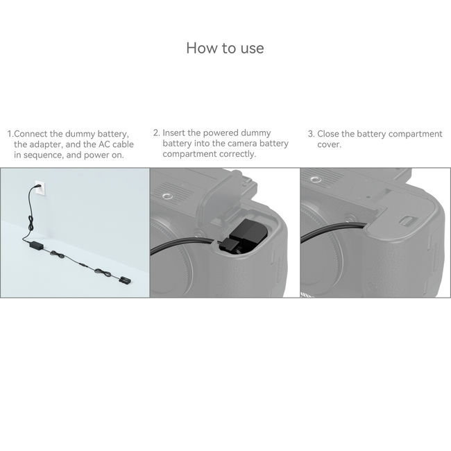 - Sản phẩm SmallRig LP-E6NH Dummy Battery kèm Power Adapter cung cấp nguồn điện liên tục cho việc quay video hoặc phát trực tiếp.