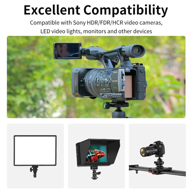 - Khả năng tương thích rộng: Tương thích với các máy quay video Sony HDR/FDR/HCR, đèn LED video, màn hình và các thiết bị khác.