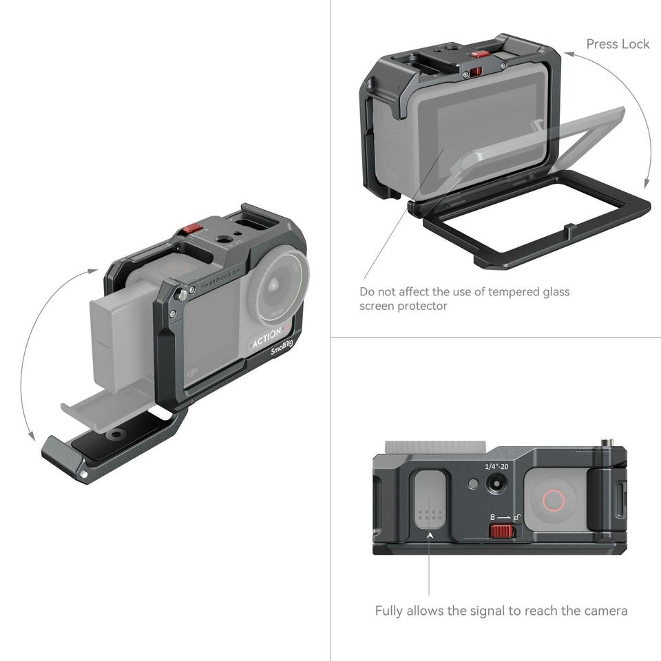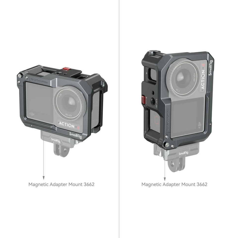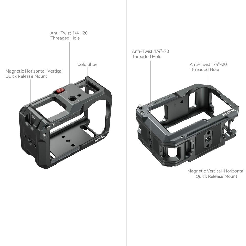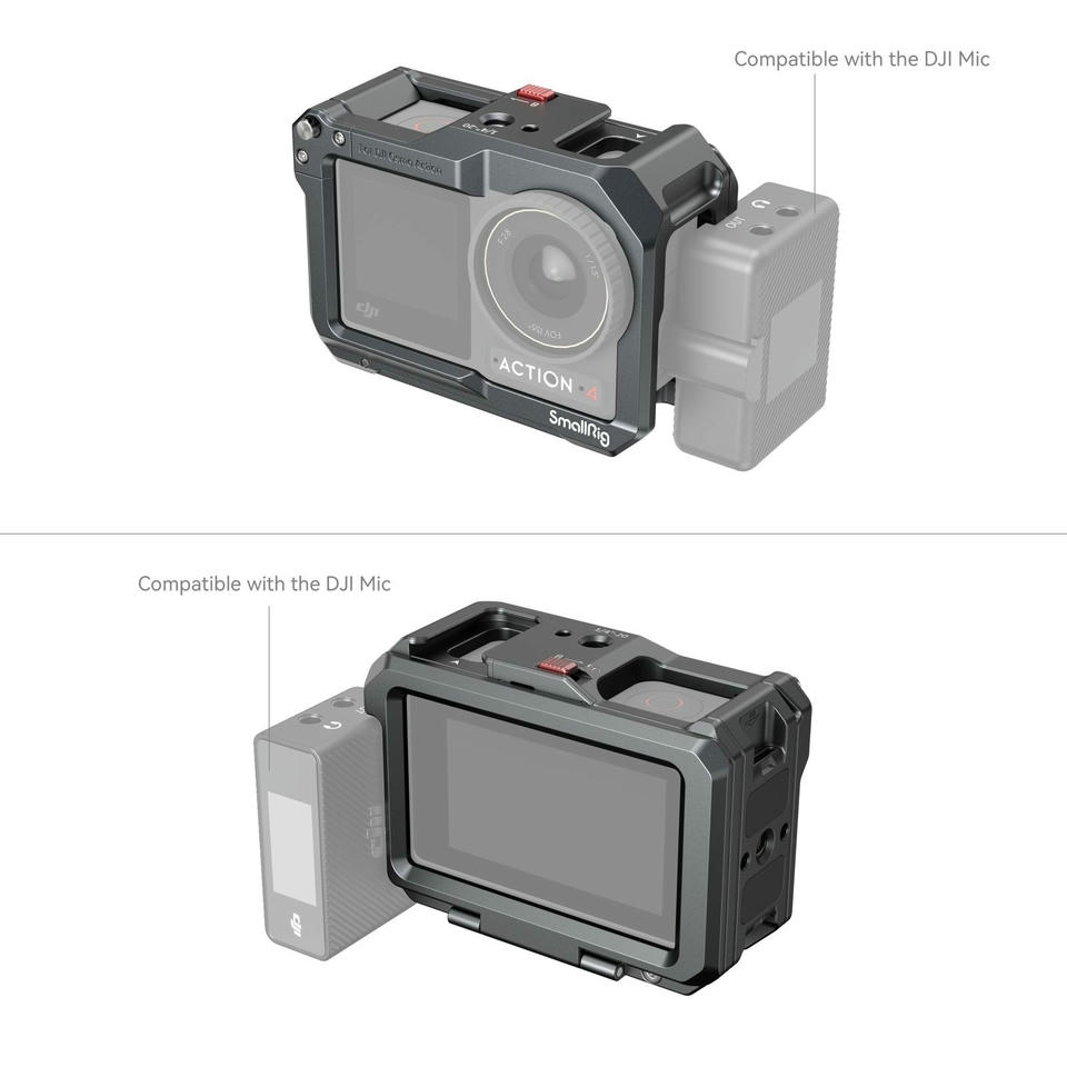 Sản phẩm SmallRig Cage dành cho camera hành động DJI Osmo Action cung cấp giải pháp bảo vệ và lắp đặt cho các dòng camera Osmo Action 3, 4, và 5. Thiết kế cho phép truy cập dễ dàng đến các cổng và cửa pin, đồng thời hỗ trợ mic DJI.