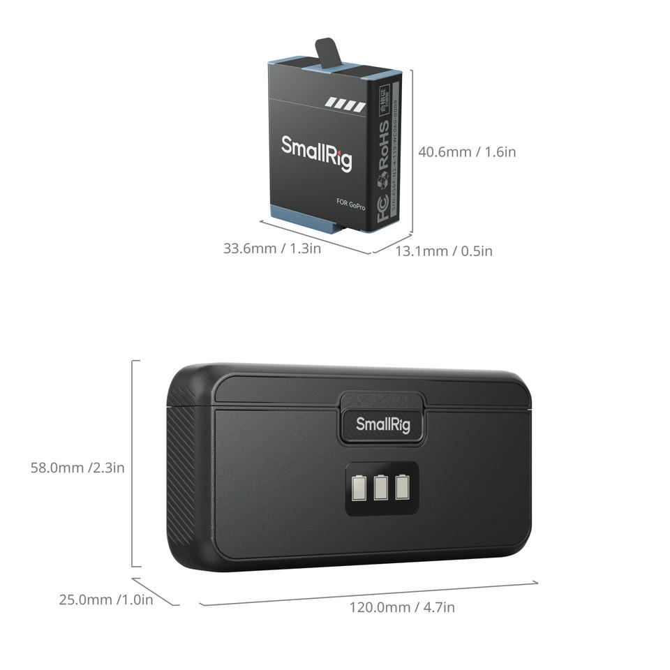 Bộ Kit Pin và Sạc SmallRig dành cho GoPro 9/10/11/12 cung cấp khả năng sạc và lưu trữ hoàn chỉnh với 3 pin dung lượng cao và hộp sạc nhanh. Thiết kế an toàn, bền bỉ với nhiều tiện ích hỗ trợ quá trình quay phim không bị gián đoạn.