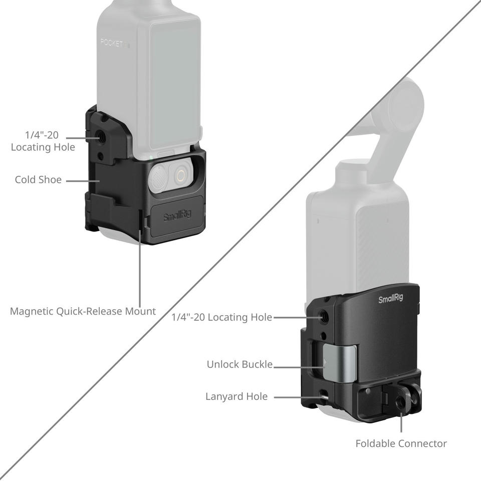 SmallRig Cage cho DJI Osmo Pocket 3 5072 là một phụ kiện linh hoạt và mở rộng, nhưng vẫn đủ nhỏ gọn để nằm gọn trong lòng bàn tay. Nó nhẹ và bảo vệ, đi kèm với cơ chế tháo lắp nhanh chóng.