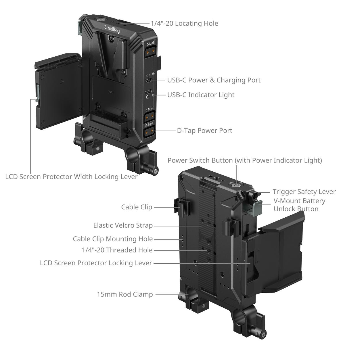 SmallRig 5226 – Bộ giá đỡ pin V-Mount được thiết kế để gắn nhanh pin V-mount lên thanh 15mm, đồng thời cung cấp nhiều tính năng hỗ trợ tiện lợi cho việc quay phim chuyên nghiệp.