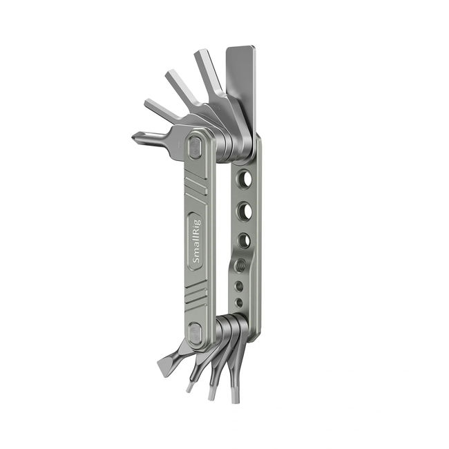 Bộ dụng cụ đa năng gấp 9 trong 1 SmallRig dành cho người quay phim là một công cụ gấp lại hữu ích cho người quay phim với các lỗ lưu trữ có ren để giữ vít gần tay.