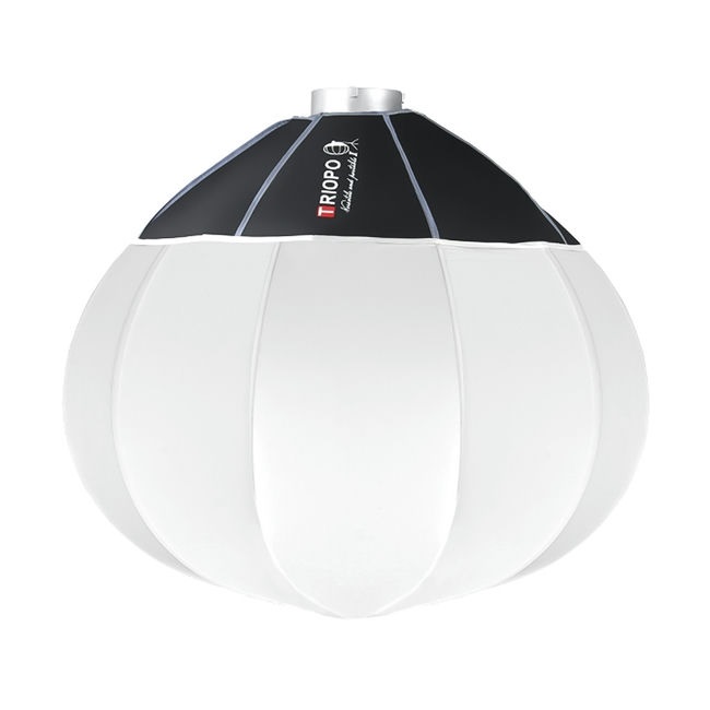 Softbox cầu Triopo 65cm KQ-65 và KQ-85 được làm từ hợp kim nhôm và có khung thép không gỉ. Softbox có hình dạng cầu và tạo ra ánh sáng xung quanh 360°. Nó có lớp vải trắng để giảm độ sáng và tạo ra ánh sáng mịn, tỏa đều.