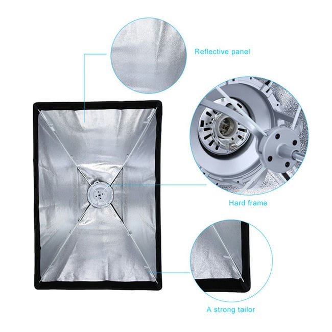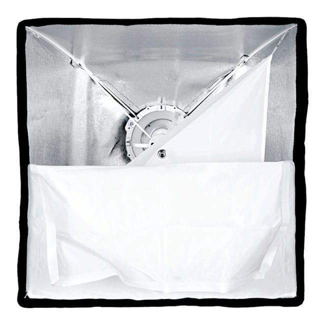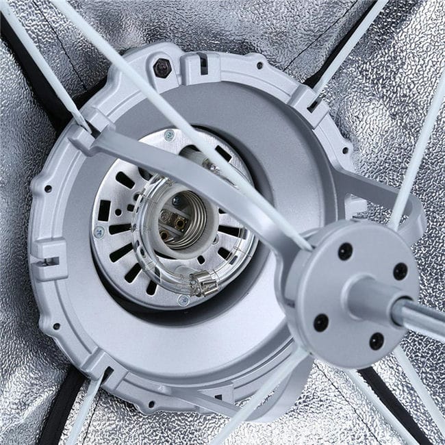 Softbox này được gắn trên chân đèn thông qua một cánh dù.